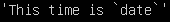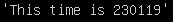바로 시간을 출력해주는 명령어입니다. 그럼 아래명령어를 실행했을 경우 "This time is 현재시간"이 출력 될거라고 믿을 겁니다.