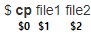 이때 그림처럼 cp는 $0이 되고, file1은 $1,file2는 $2이 되겠습니다. 아래 표를 참고 해주세요