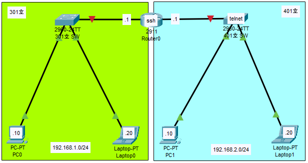 이번 포스팅은 패킷트레이서를 이용해서 ssh와 telnet에 대해 알아보고 설정까지 해보겠습니다. 1. telnet 이란? 네트워크를 통해 장치와 장치 간의 연결을 할 수 있게 해주는 프로토콜입니다. 포트 번호는 23번입니다. 간단한 구성으로 사용할 수 있는 방법 중 하나이며 간단한 만큼 보안에 취약합니다. 2. ssh 이란? telnet과 똑같이 네트워크를 통한 원격연결을 지원하는 프로토콜이며 포트 번호는 22번입니다. ssh와 telnet을 비교해서 보면 ssh는 강력한 인증 방법으로 안전한 접근이 가능합니다. 3. 기본 구성 301호 망과 401호 망으로 총 2개의 네트워크로 구분하였고 각 네트워크에서는 C 클래스를 이용해 고정 ip주소 설정을 하였습니다. 401호 SW에는 telnet 구성, Ro..